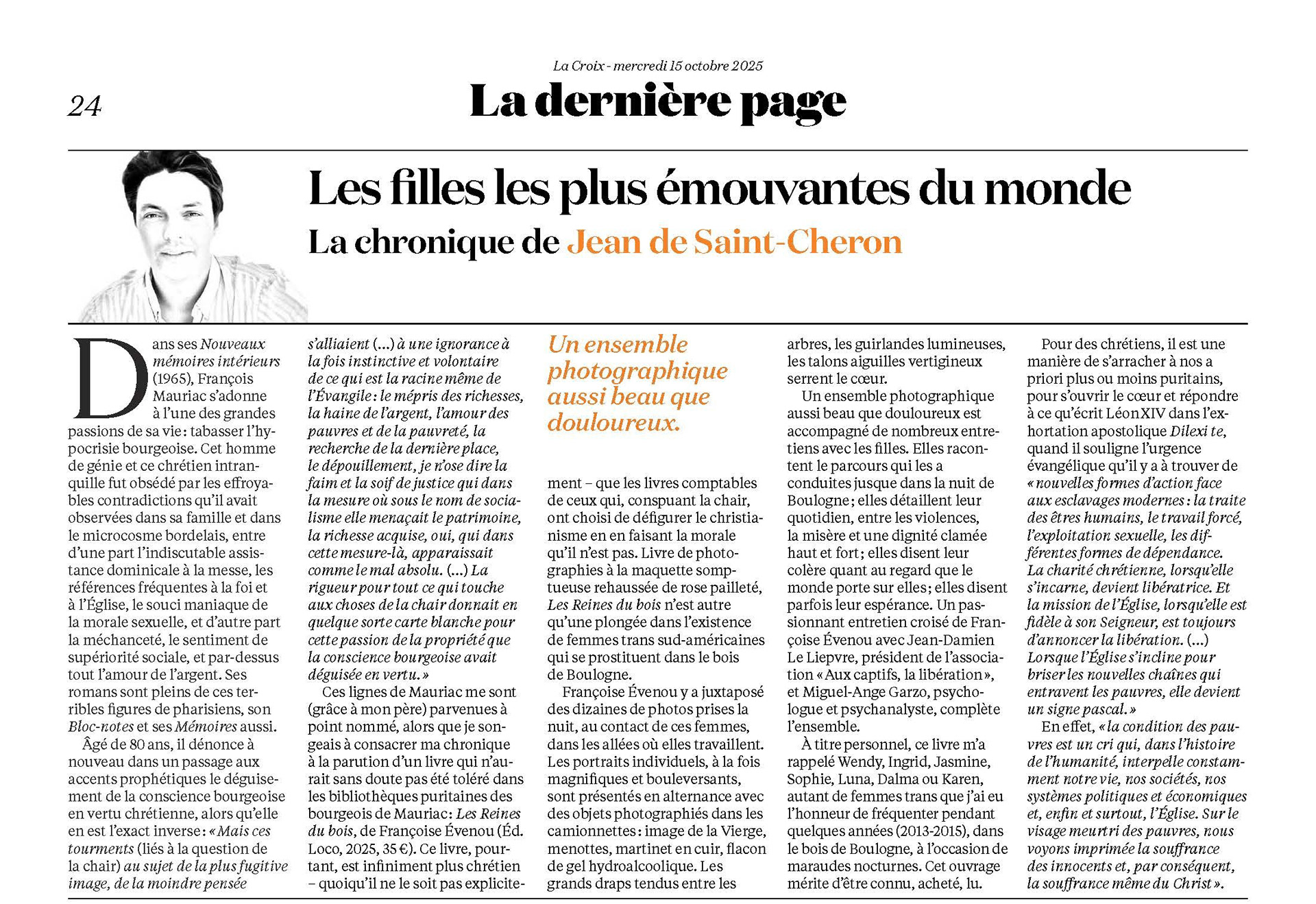 15.10.25 La Croix - "Les filles les plus émouvantes du monde"